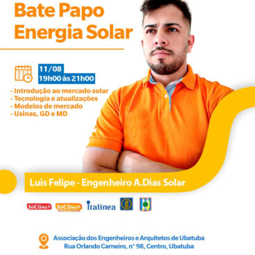 15Aug15 de August de 2022 Palestra Sobre Energia Solar Douglas Assunção2022-08-15T16:56:30-03:00 By Douglas Assunção Sem categoria 0 Comments Palestra promovida pela SóClima Solar realizada em 11/08/2022. Palestrante: Luis Felipe Martins de Oliveira (Eng. Eletricista)